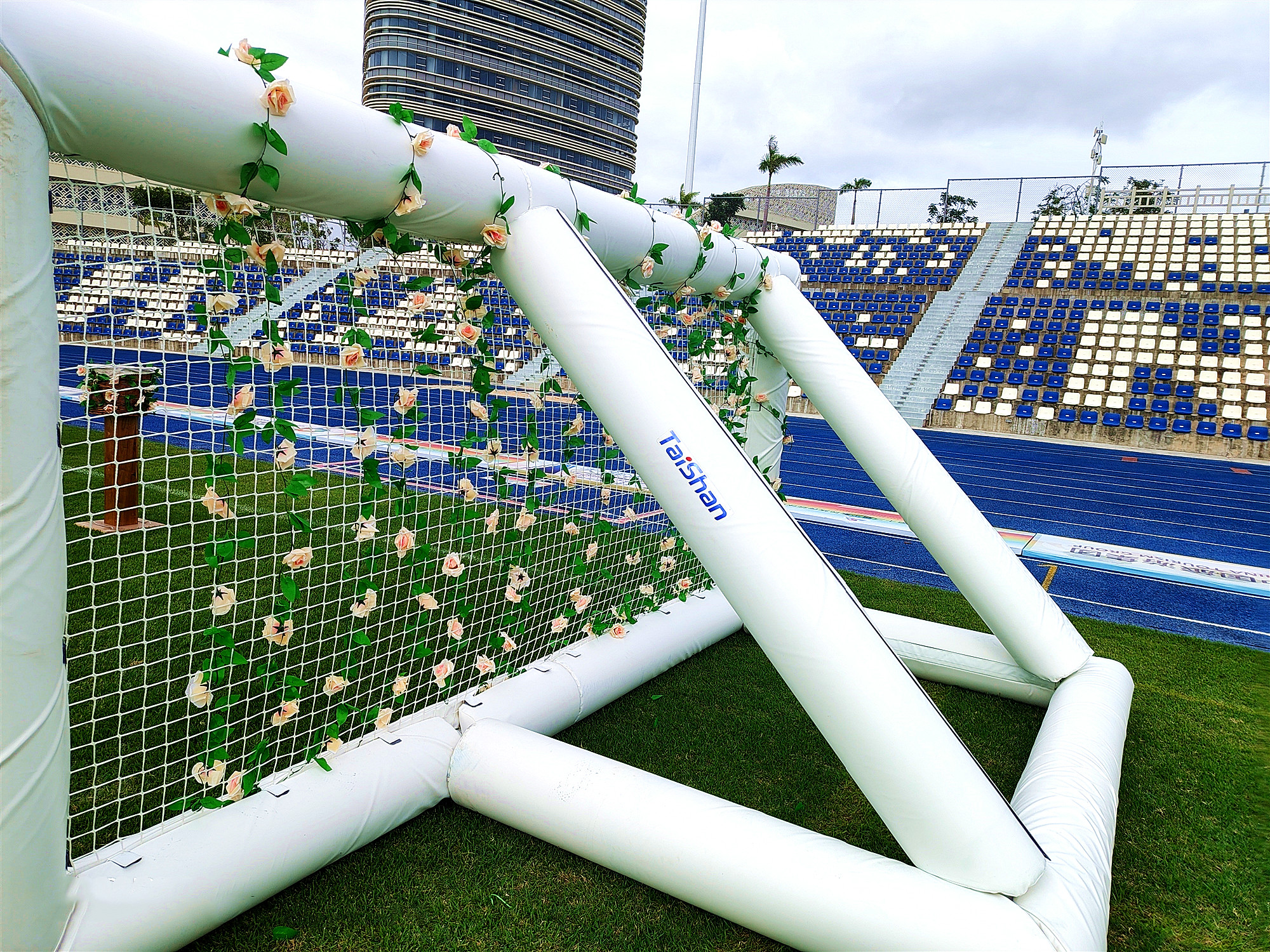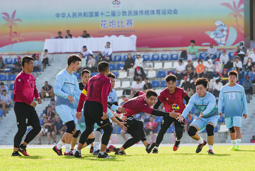 花炮原称“抢花炮”,是流行于广西、贵州、云南、湖南等地的一项民间传统体育活动,已有500多年的历史。本届赛事上,端庄、大气、靓丽的花炮门器材完全由3003新葡官方网站体育自主设计安装,为赛事举办增添了浓厚氛围。